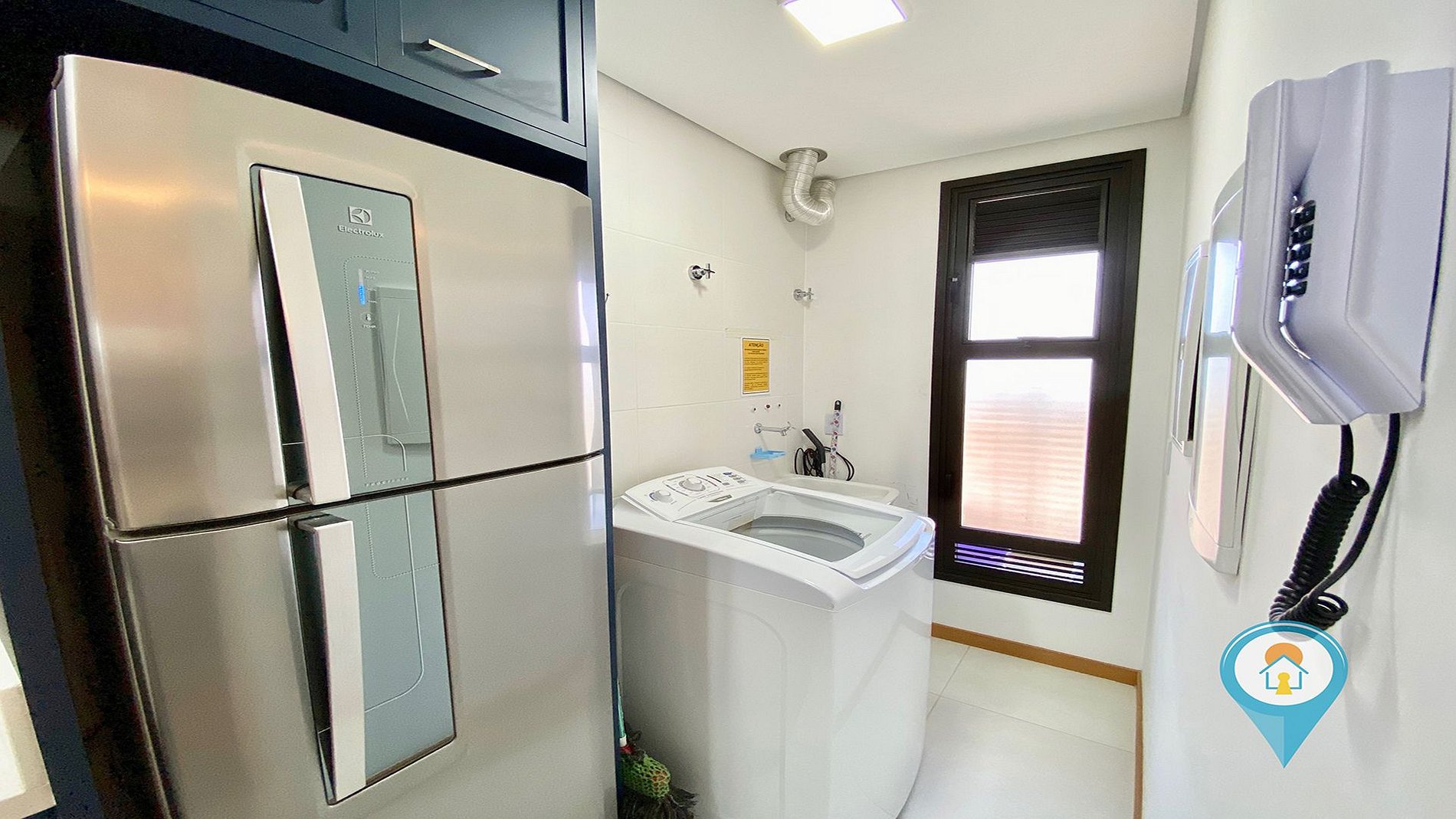 O apartamento dispõe de cozinha completa: Geladeira, microondas, fogão, cafeteira, sanduicheira e outros eletros. Também inclui utensílios - pratos, copos, talheres, panelas, panos de prato, potes e utensílios de churrasco, faca, garfo e tábua de carne.