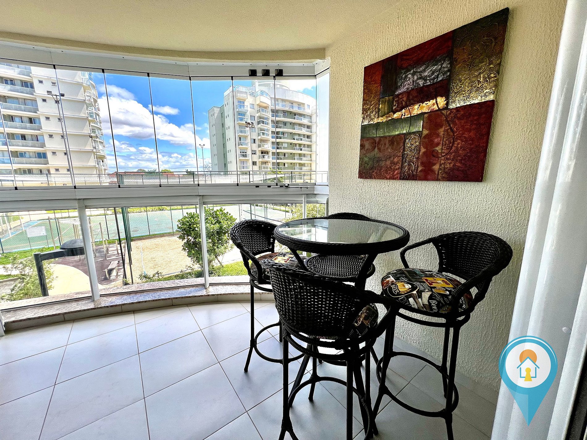 Completo com utensílios, ar condicionado e sacada com churrasqueira, é ideal para famílias com crianças.