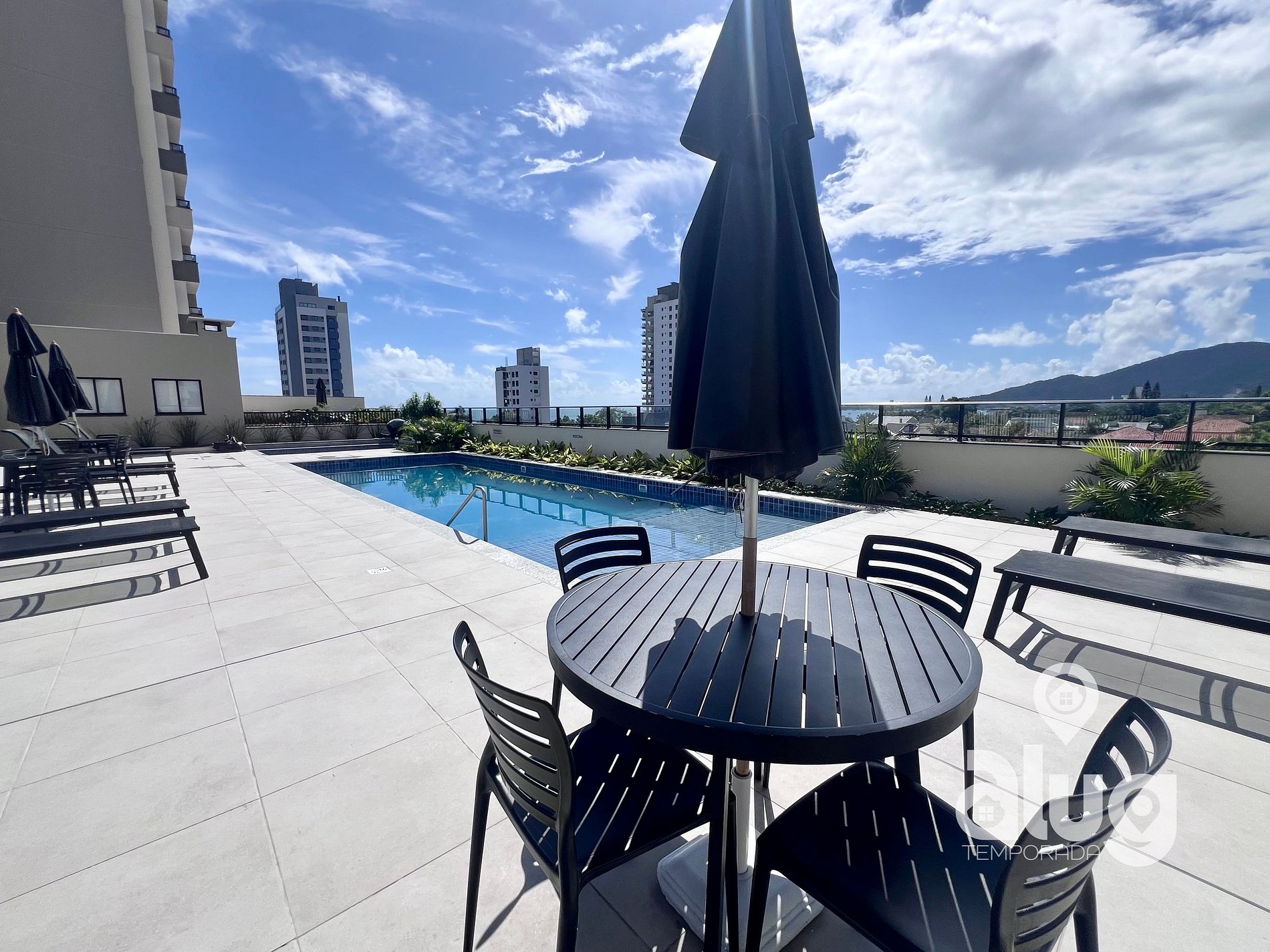 O condomínio oferece completa estrutura de lazer: piscinas adulto e infantil, playground, academia a céu aberto, área de convivência e portaria 24 horas, garantindo segurança e tranquilidade durante toda a sua estadia.