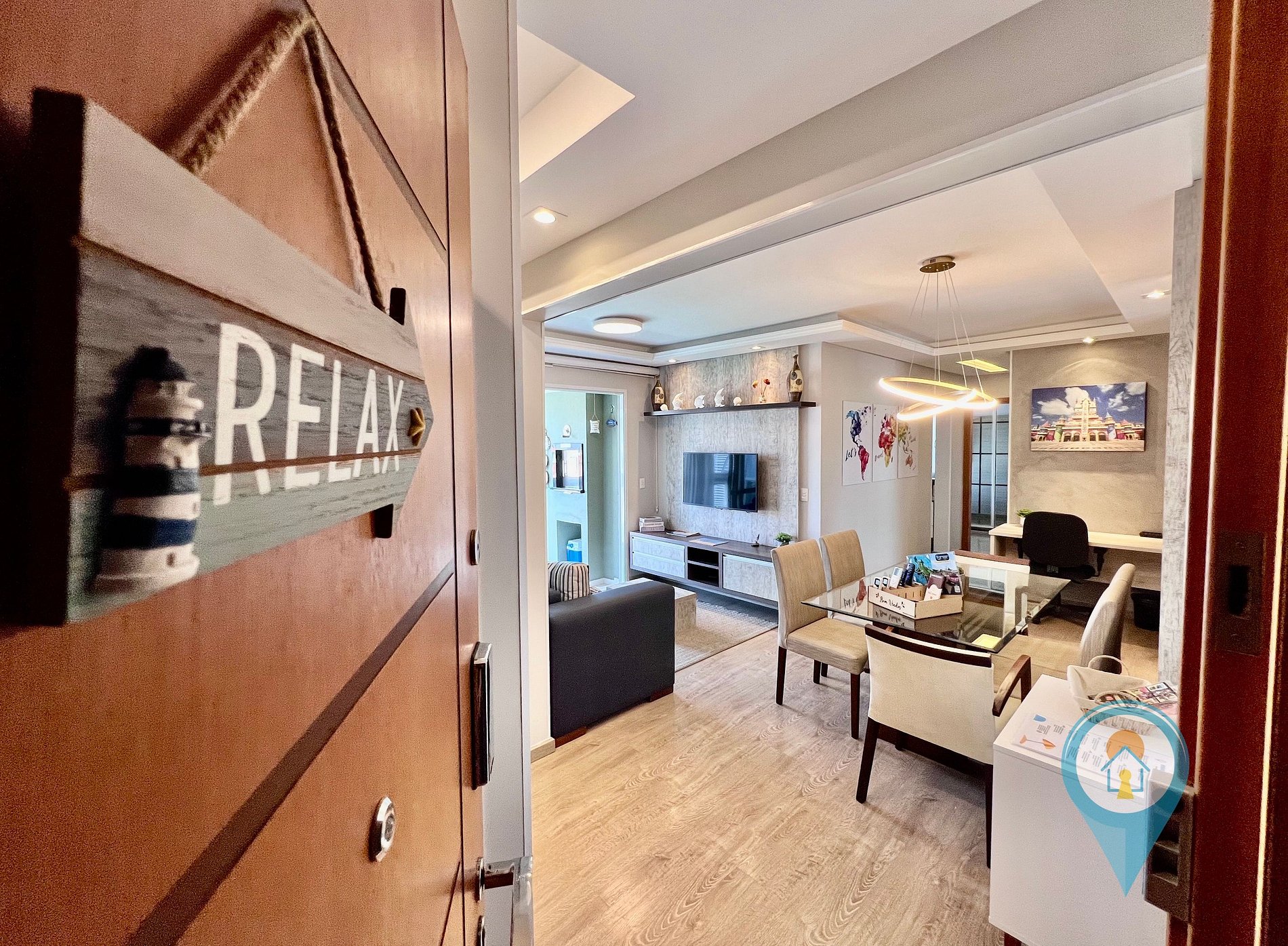 Apto aconchegante, finamente decorado com 2 quartos, sendo 1 suíte, todos com Ar condicionado e ótima internet Wi-fi fibra ótica 500 Mbps. Equipado com cozinha completa, sacada com churrasqueira e vista para o mar, TV, roupas de cama e toalhas devidamente higienizados.