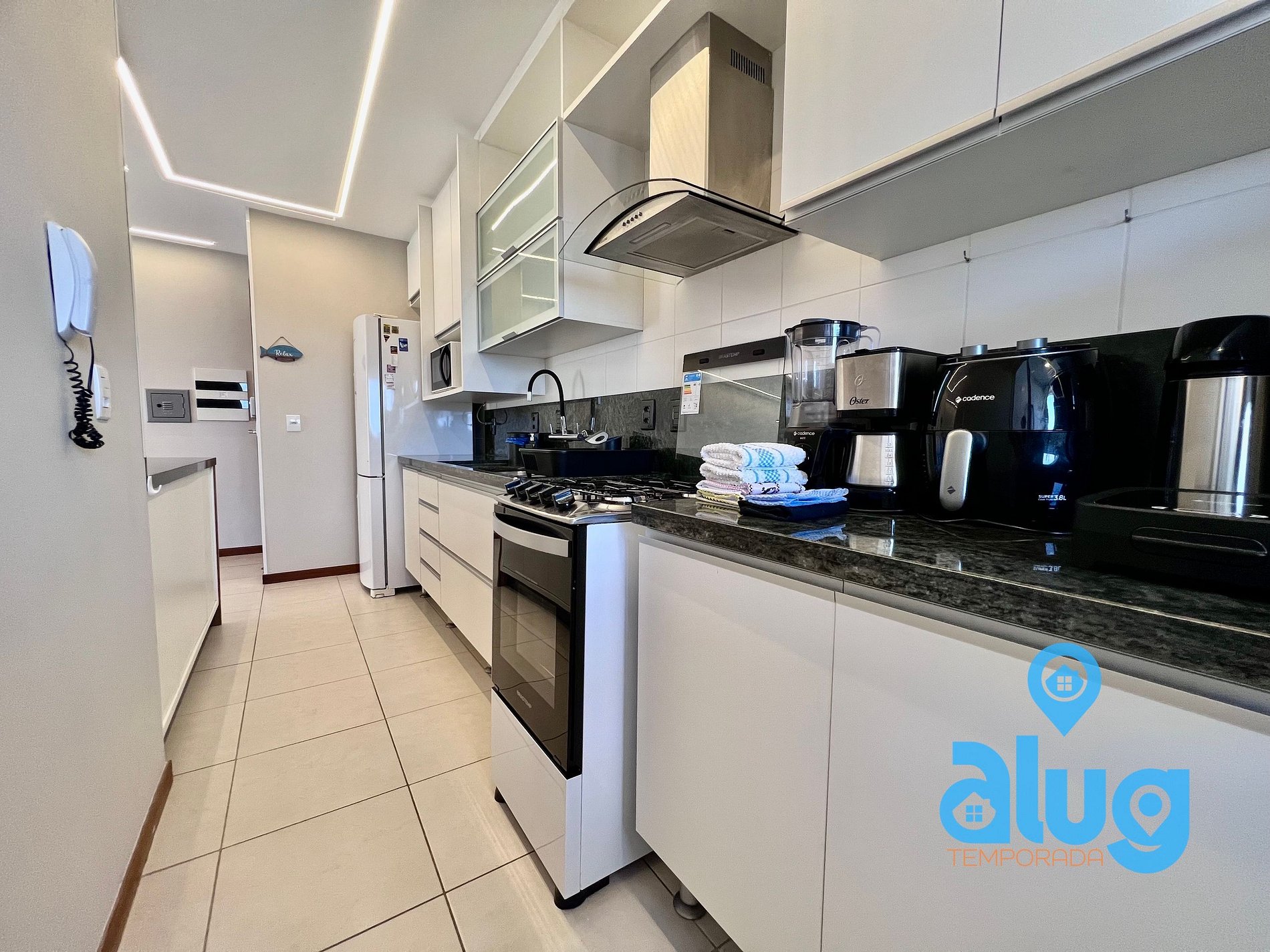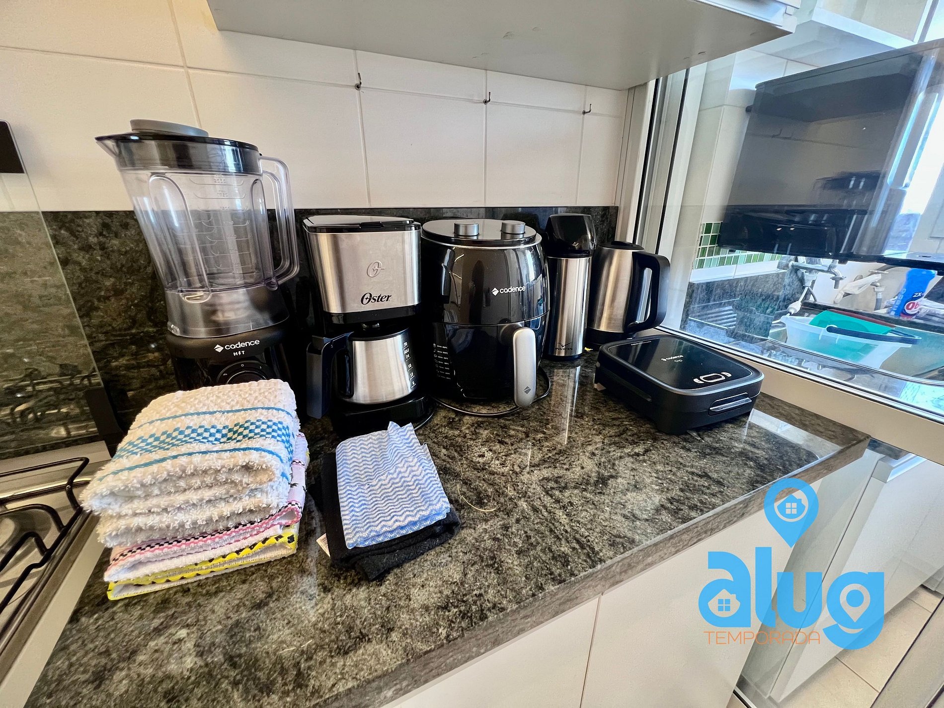 - Cozinha completa com utensílios, geladeira, fogão e pequenos eletros,
