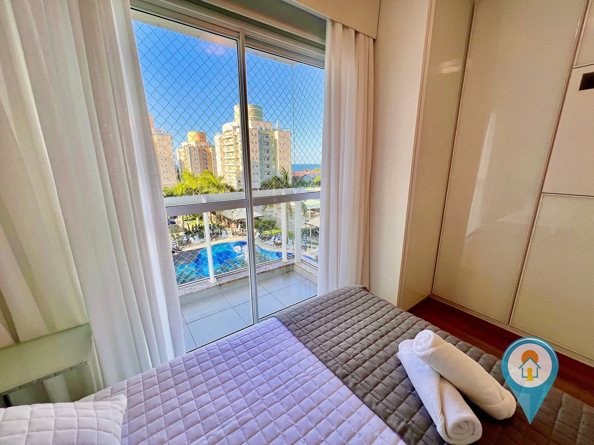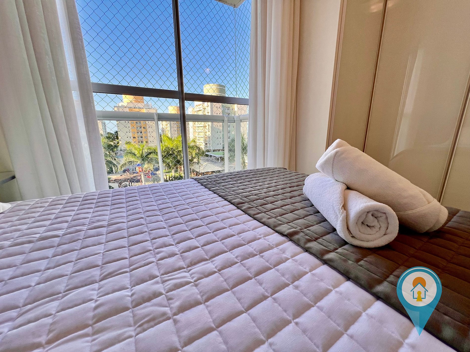 Apto LUXO em condomínio Home Club próximo a praia e ao Parque Beto Carrero World. Inclui roupas de cama, toalhas, internet Wi-fi, smart TV, cozinha completa com eletros e utensílios, telas de proteção em todas as janelas e sacadas e 2 vagas de Garagem coberta.