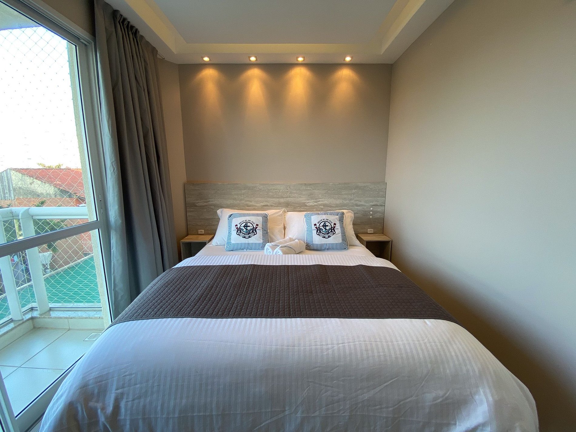 - Telas de proteção nas janelas, sacada da suíte e fechamento em vidro na varanda da sala
