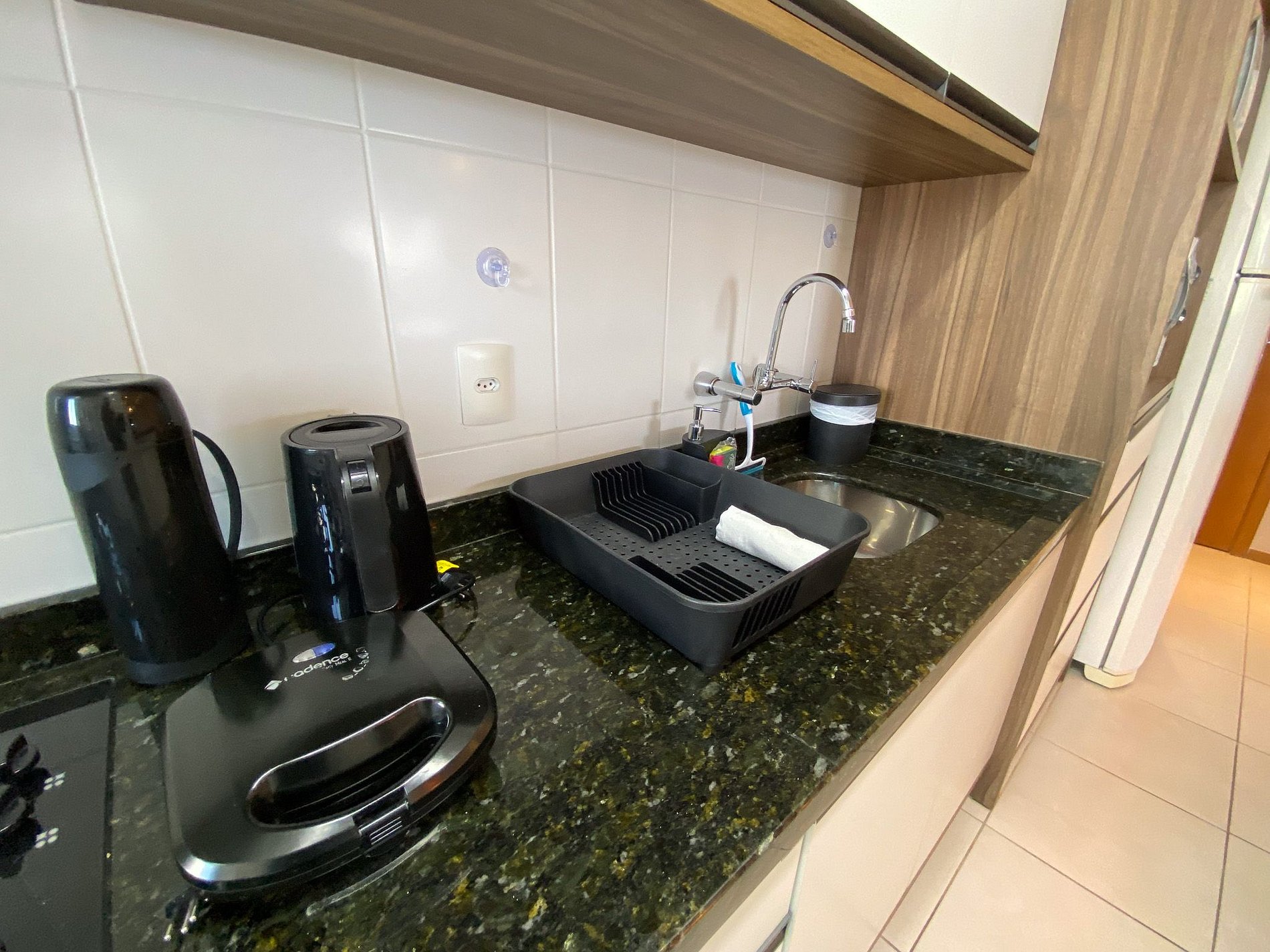 - Cozinha completa com utensílios, geladeira, fogão e pequenos eletros,