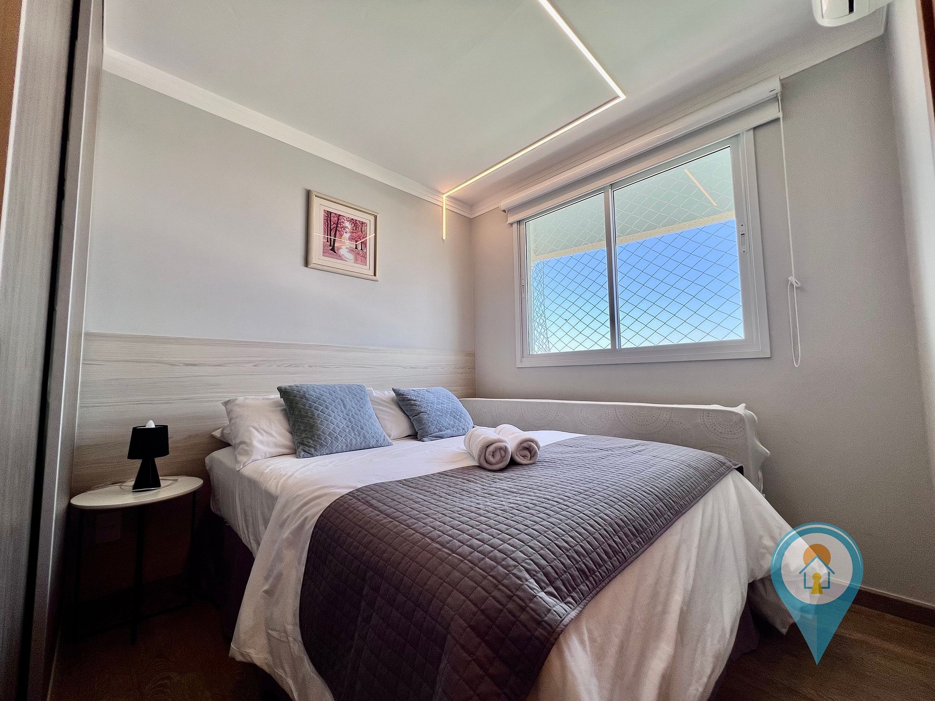 Apto aconchegante, finamente decorado com 2 quartos, sendo 1 suíte, todos com Ar condicionado e ótima internet Wi-fi fibra ótica 500 Mbps. Equipado com cozinha completa, sacada com churrasqueira e vista para o mar, TV, roupas de cama e toalhas devidamente higienizados.