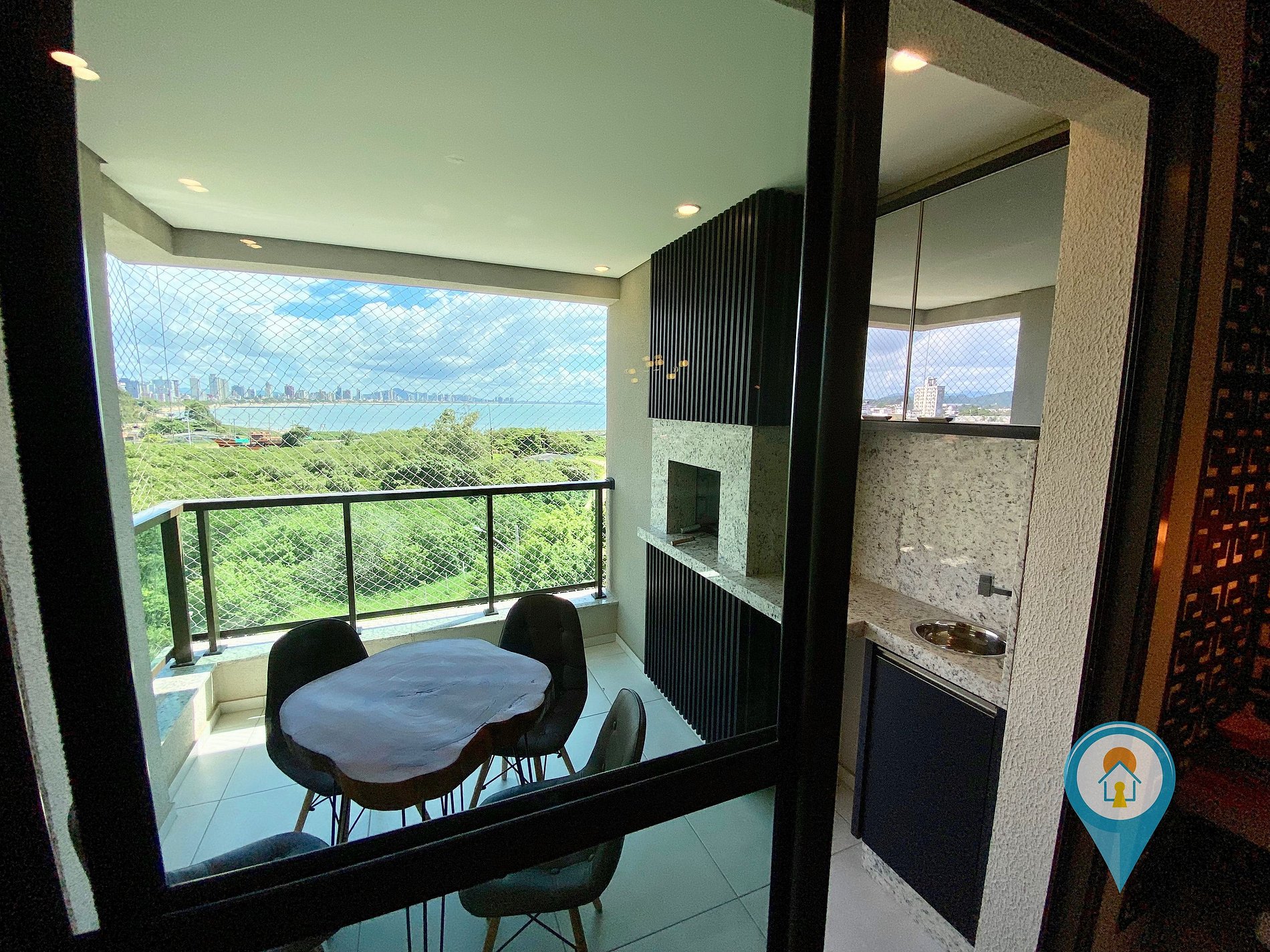 Na sala temos Smart TV 58", Ar condicionado, Confortável Sofá-cama e mesa de jantar. Saindo da sala você tem acesso a uma excelente sacada com churrasqueira e uma linda vista para o Mar