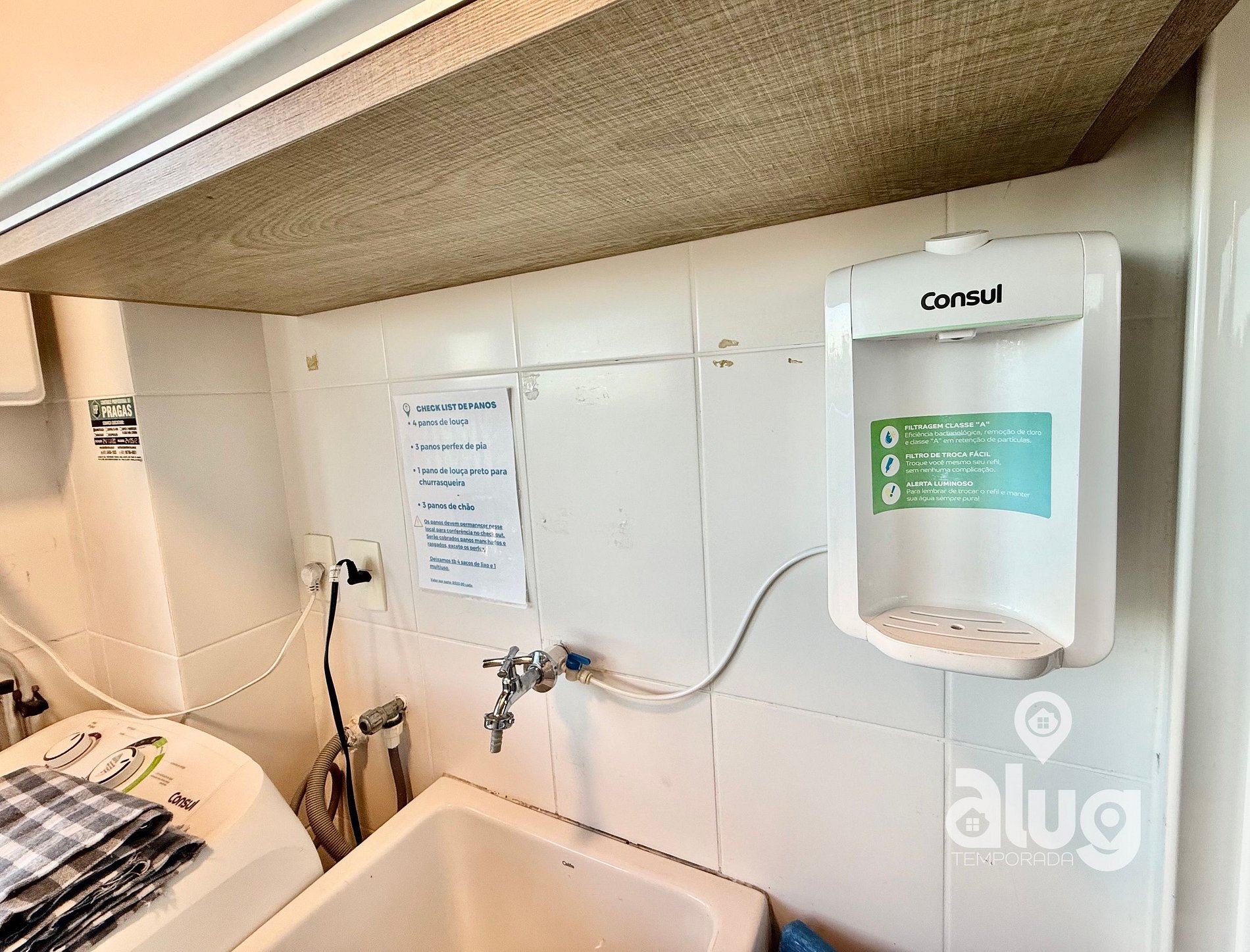 Cozinha completa: equipada com geladeira, fogão, micro-ondas, purificador de água, cafeteira, sanduicheira e outros eletrodomésticos essenciais.