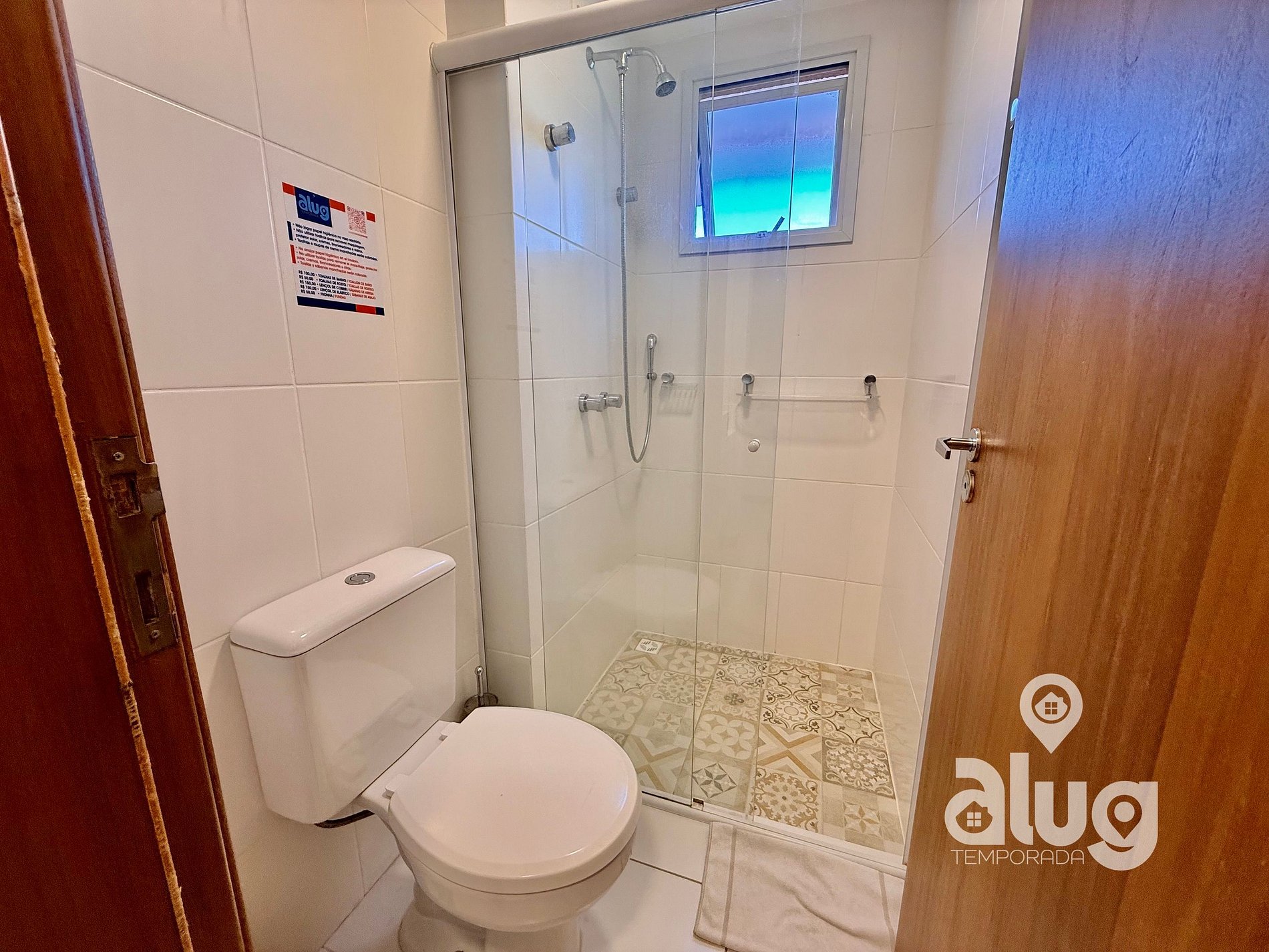 Suíte: equipada com ar-condicionado, cama de casal, dois colchões extras de solteiro e sacada com tela de proteção, ideal para quem viaja com crianças.