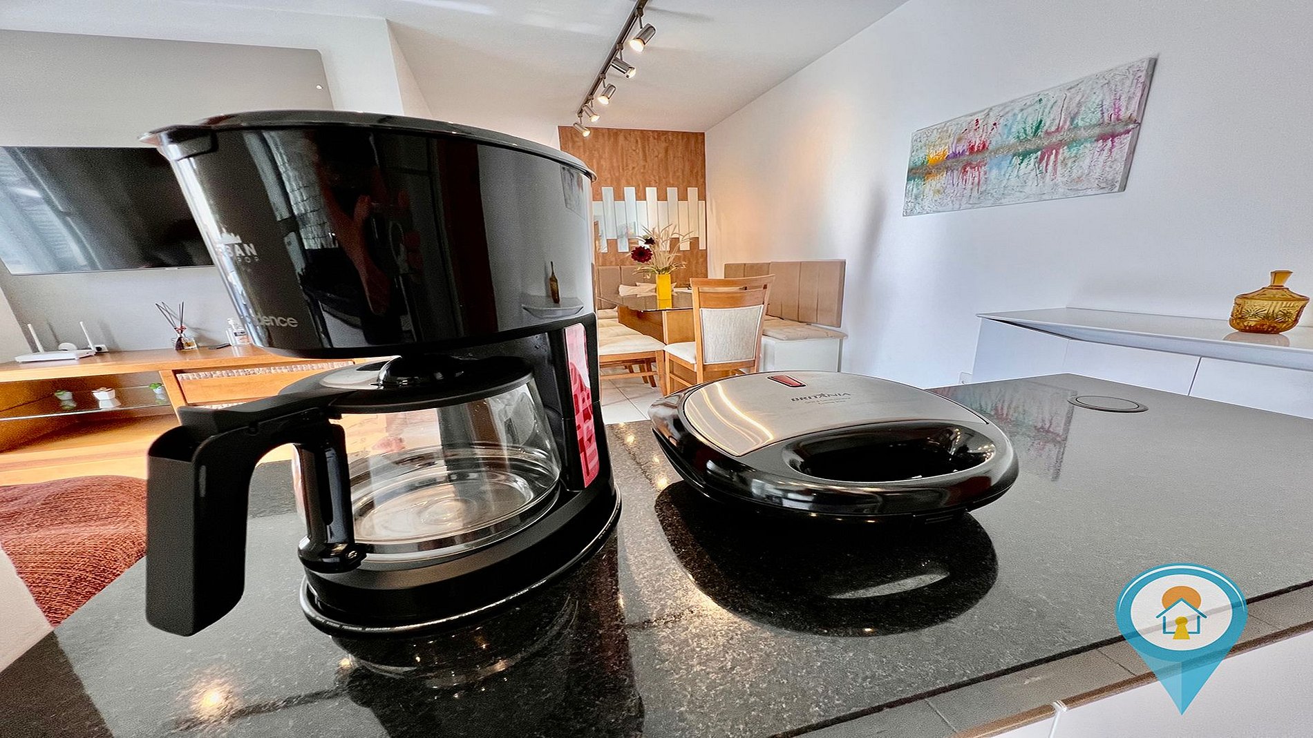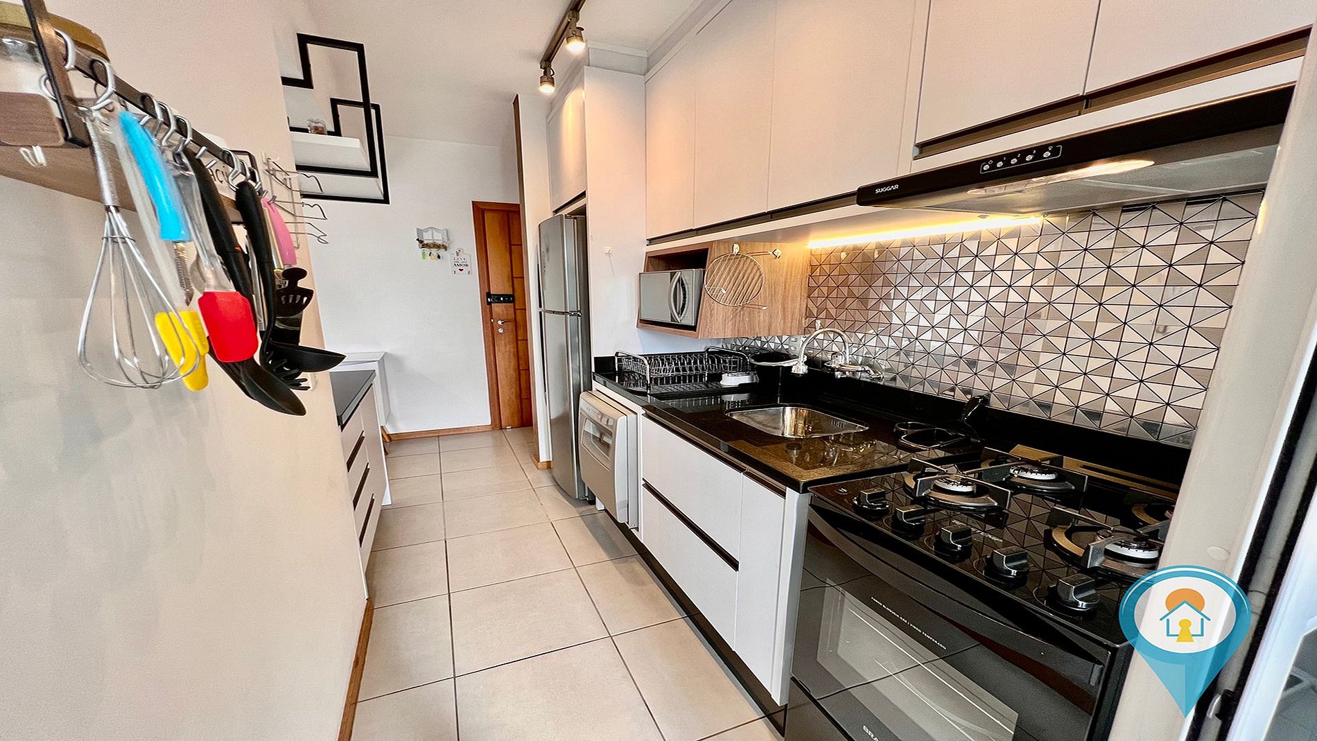 - Cozinha completa com utensílios, geladeira, fogão e pequenos eletros,