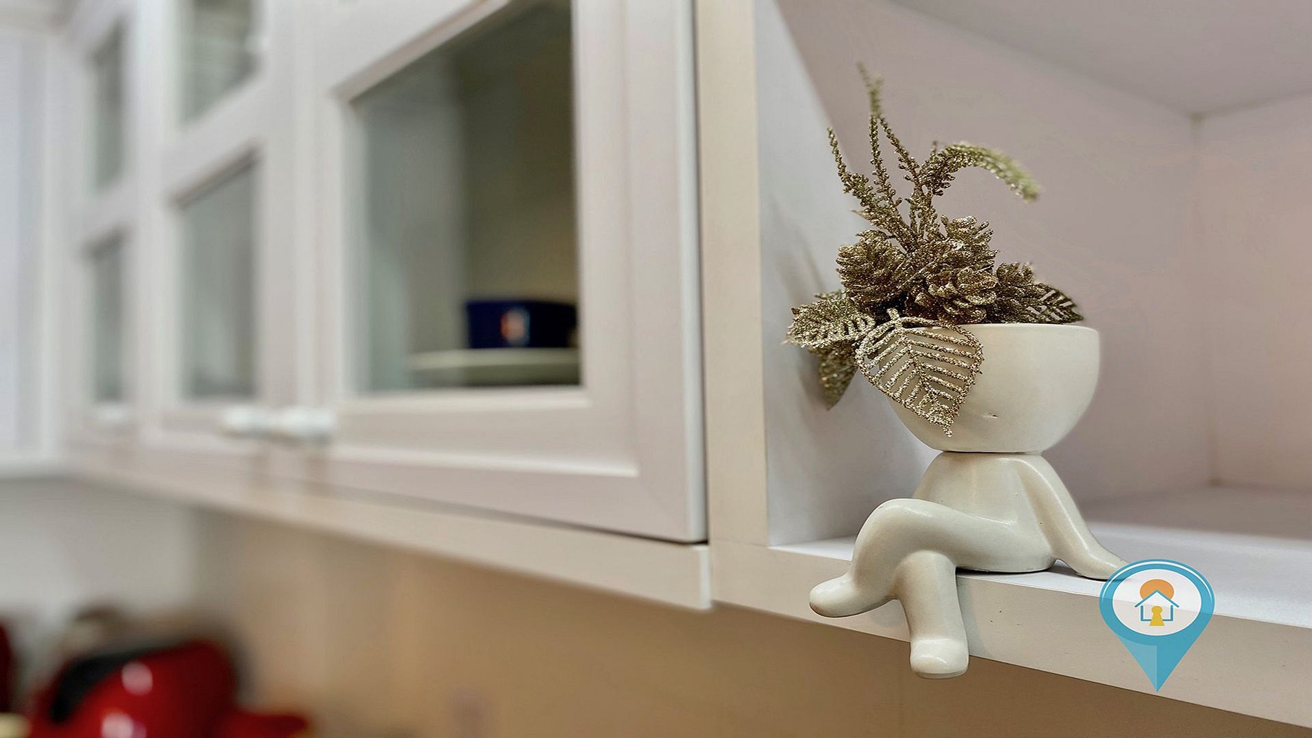 - Cozinha completa com utensílios, geladeira, fogão e pequenos eletros.