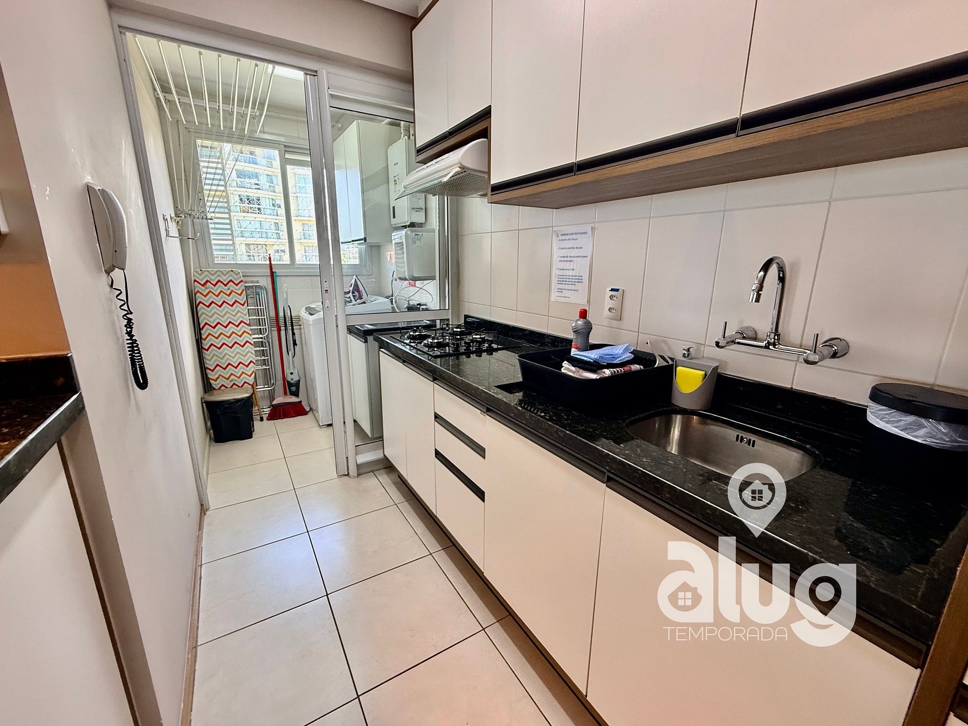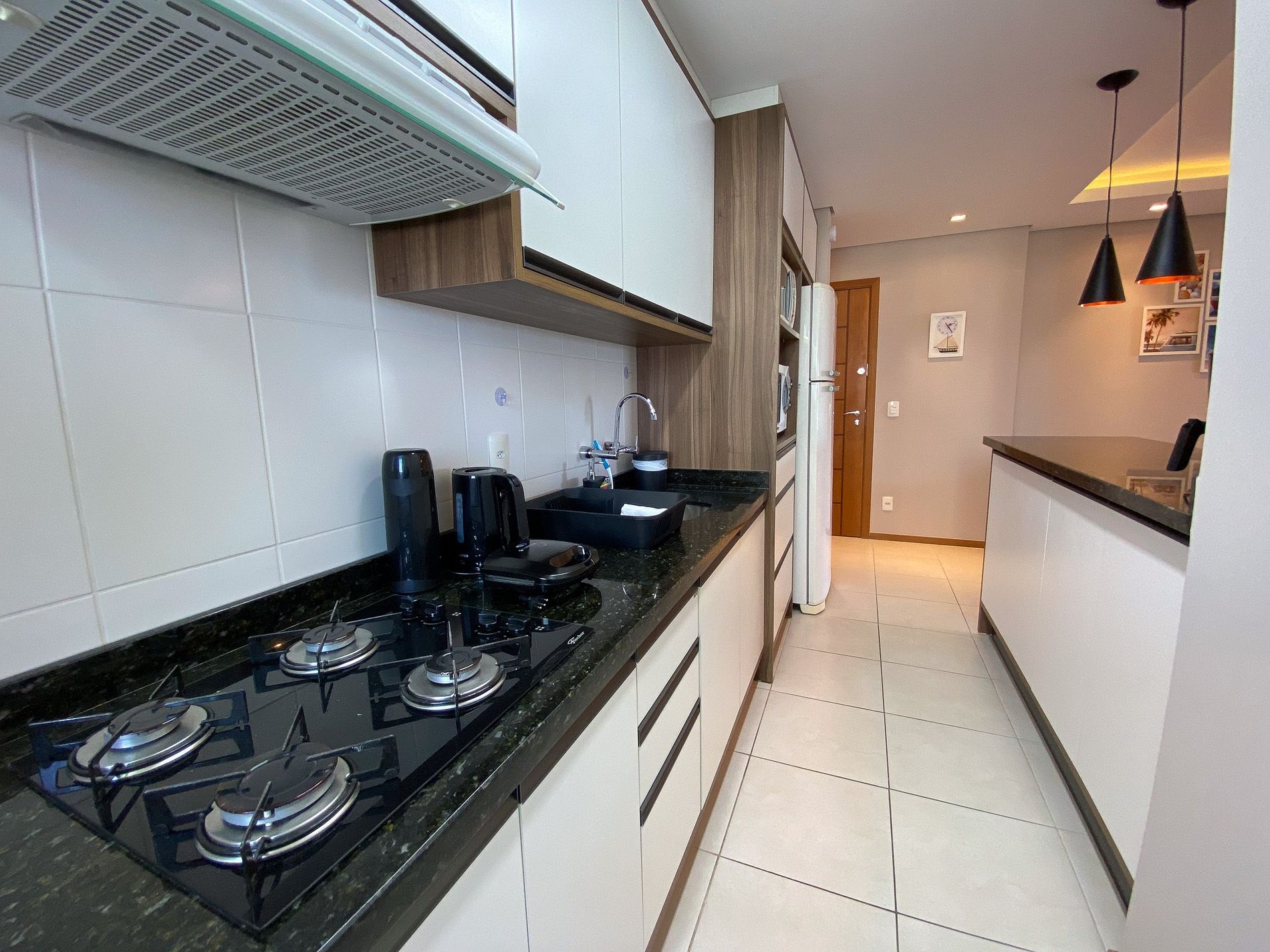 - Cozinha completa com utensílios, geladeira, fogão e pequenos eletros.