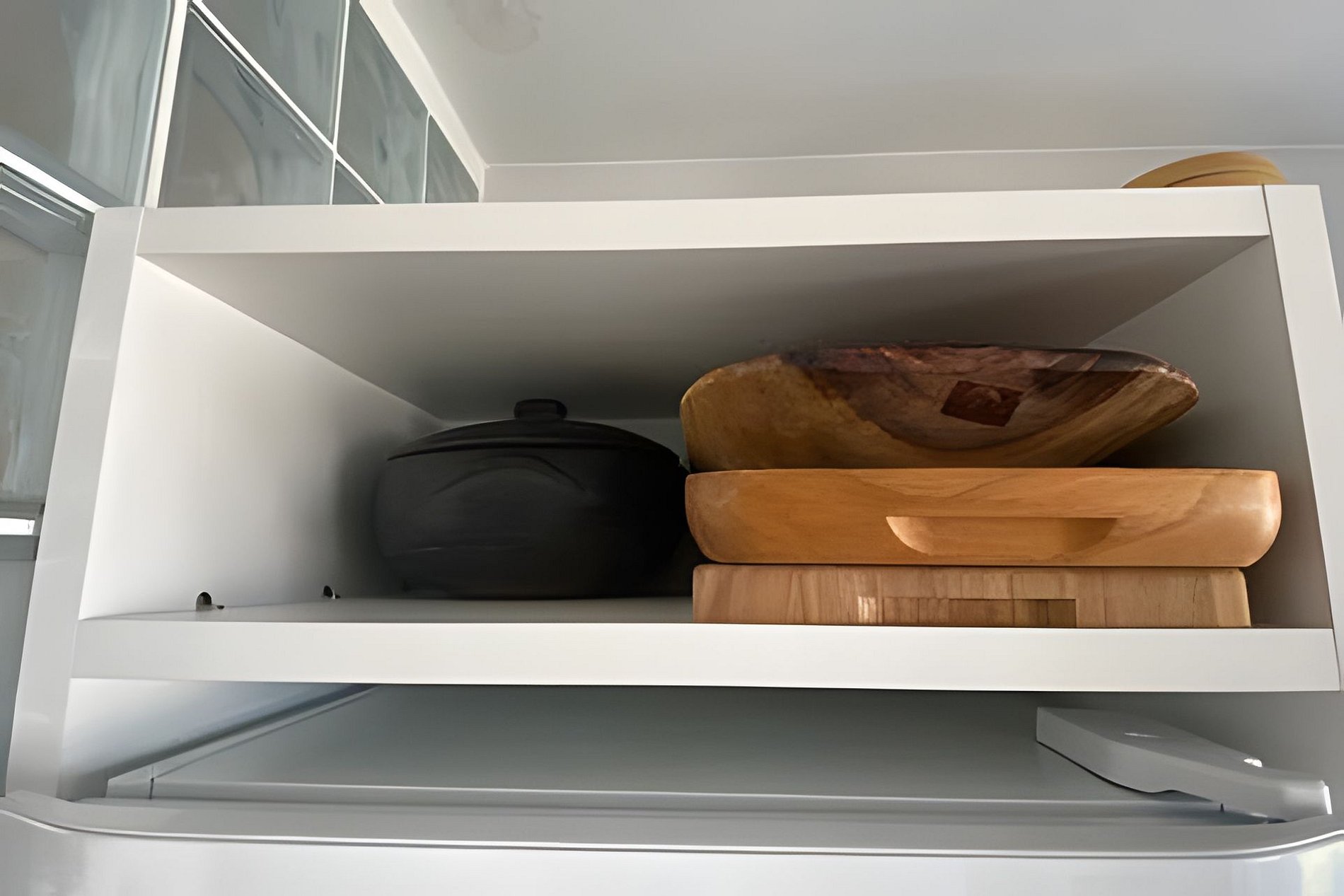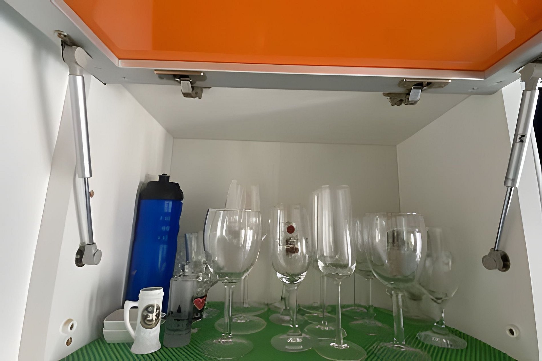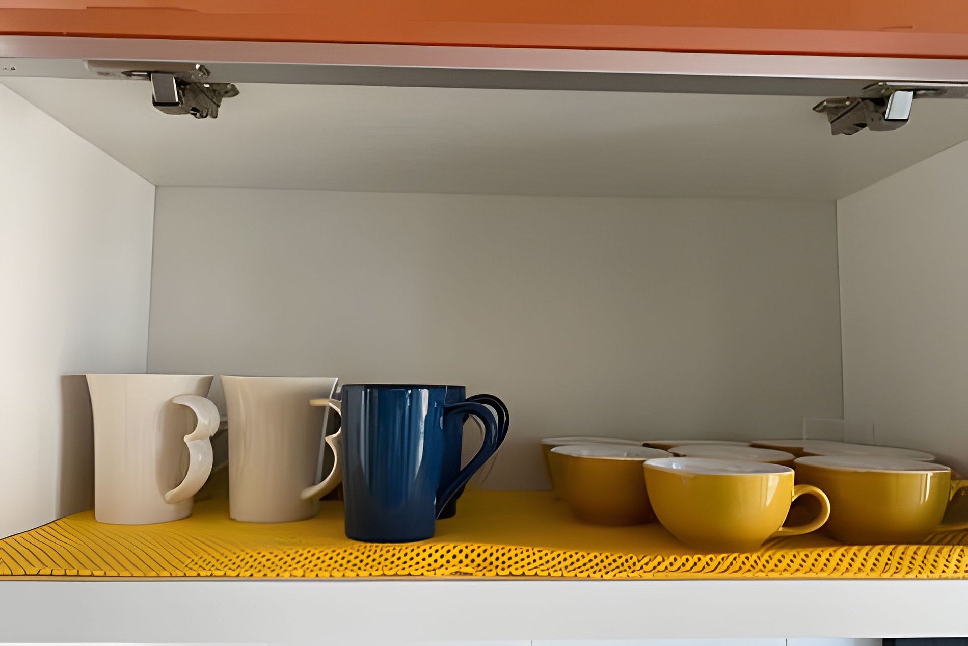 - Cozinha completa com utensílios, geladeira, fogão, micro-ondas, cafeteira, sanduicheira, copos e talheres.