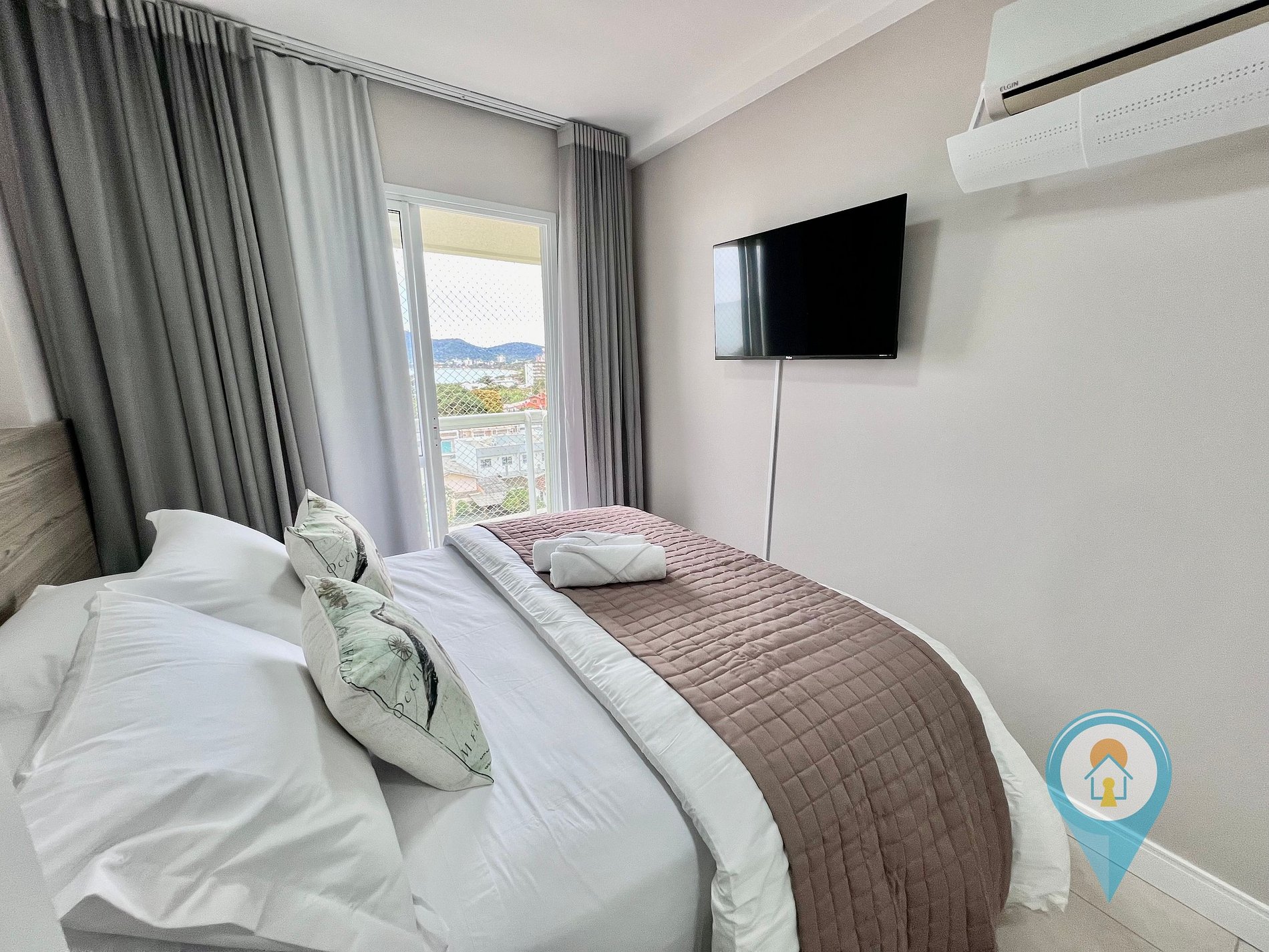 Na sala temos Ar condicionado, Smart TV , Sofá-cama e mesa de jantar. Saindo da sala você tem acesso a uma excelente sacada com churrasqueira com INCRÍVEL vista para mar a sua disposição.