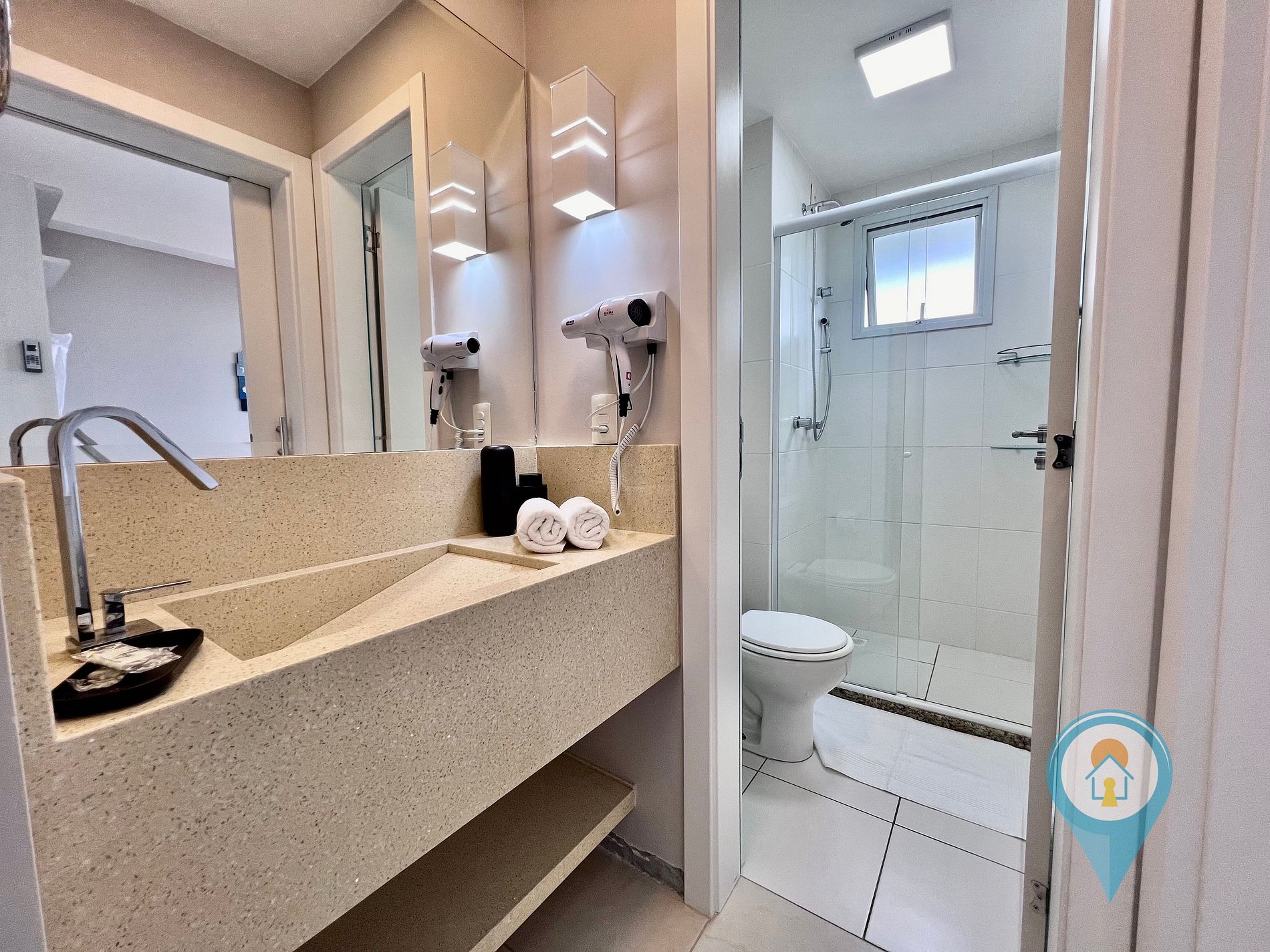 Além da estrutura do condomínio, desfrute do conforto de um apartamento bem arejado, com duas sacadas, uma delas com churrasqueira. São 2 quartos, sendo 1 suíte, todos equipados com Ar condicionado.