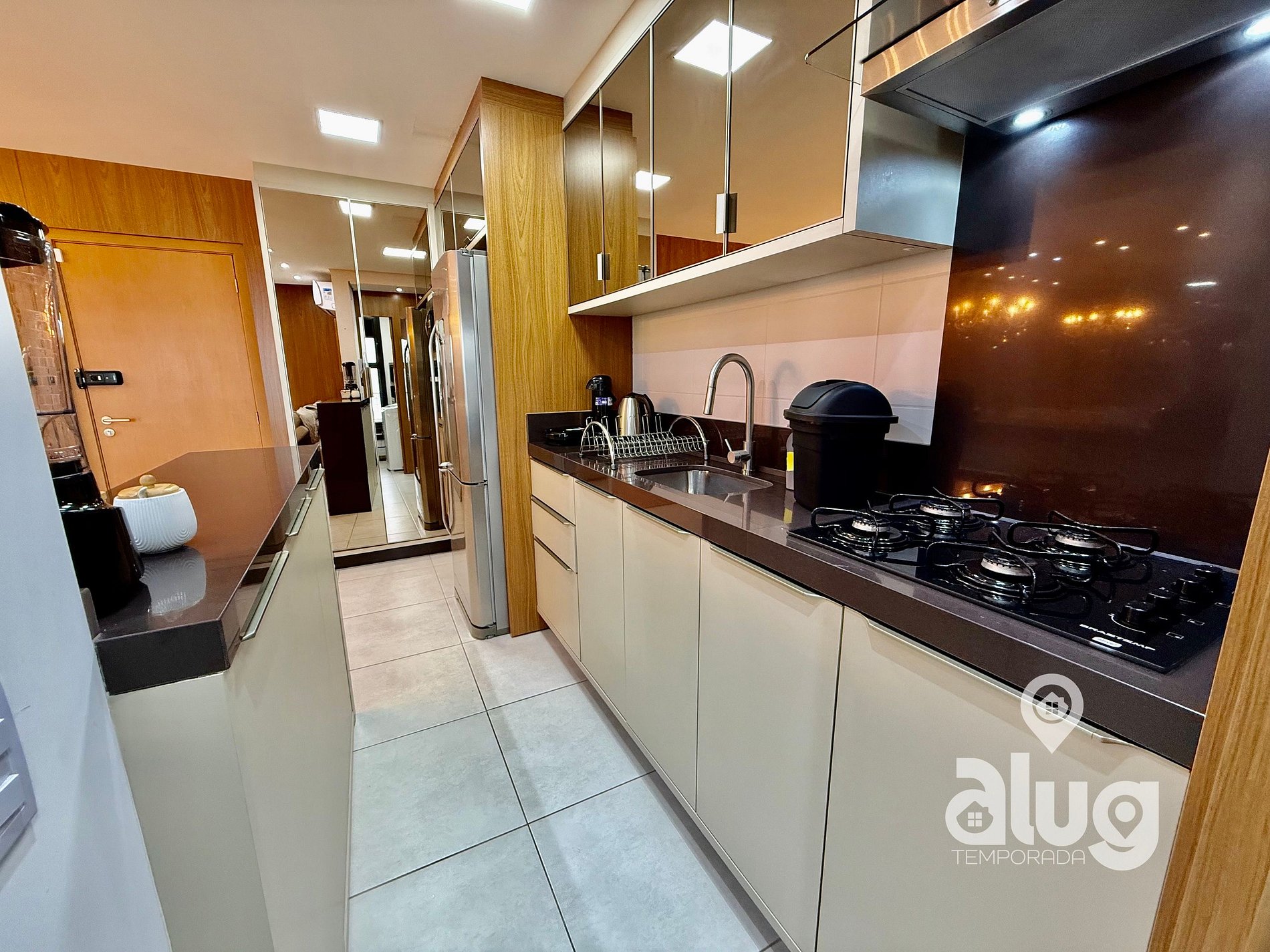 O apartamento conta com vaga de garagem coberta, aquecimento de água a gás, cozinha completa com todos os utensílios necessários, além de roupas de cama e toalhas inclusas para sua comodidade.
